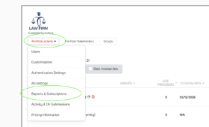 How do I put an entity onto a watching subscription? Easily. If you are a portfolio admin, just click on “Portfolio actions” > “Reports & Subscriptions” and then scroll down to Subscriptions. Select the entity you want to change and click on {Watching only}. Please note that you can only put an entity on a watching on subscription. To reactivate an entity – on to a full subscription – please contact Kudocs.