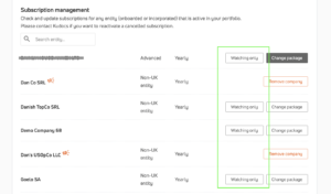 How do I change subscription? Easily. If you are a portfolio admin, just click on “Portfolio actions” > “Reports & Subscriptions” and then scroll down to Subscriptions. Select the entity you want to change and click on {Change package}