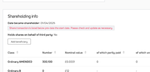 It does not matter if you do not add this information straight away, or if you complete Quick Onboarding (where you cannot edit shareholding information). You can always add joint/ beneficial shareholder information by editing the relevant stakeholder record after onboarding.