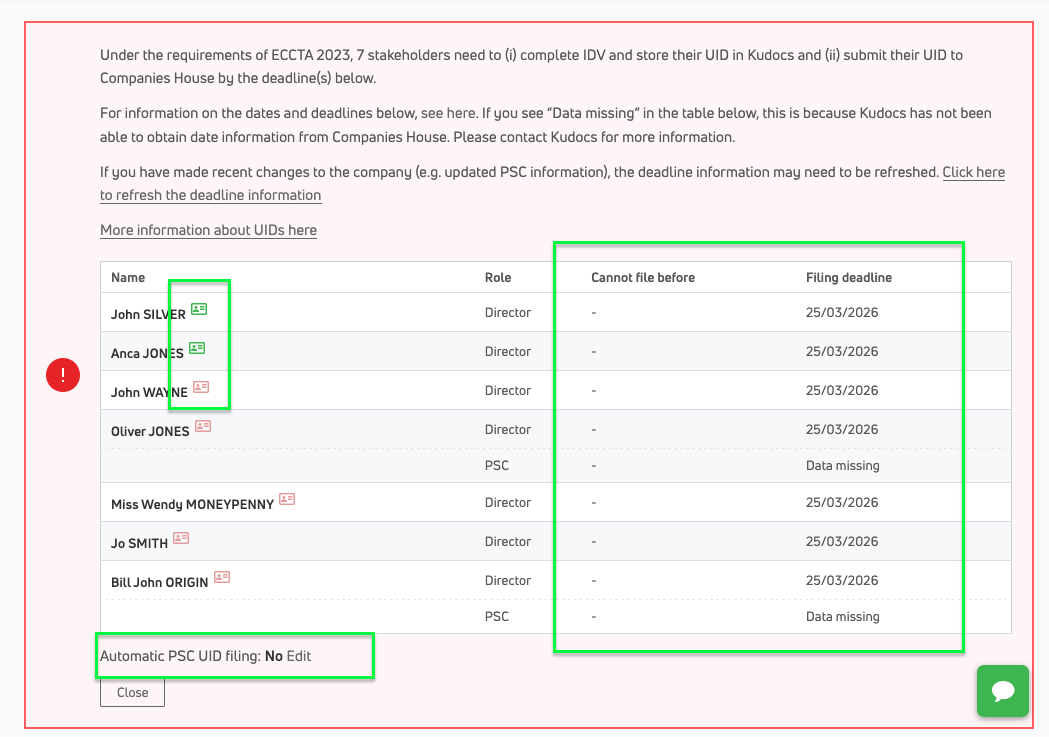 - Clear information on filing deadlines and ‘windows’ for director and PSC UIDs – sourced directly from Companies House
