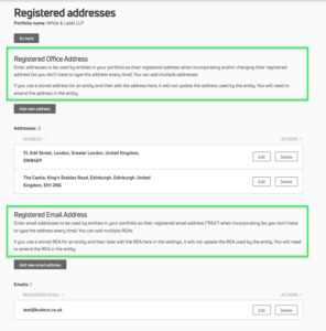 Save default Registered Email Addresses for incorporation – as well as saving template registered office addresses for incorporations, portfolio customers can now also save template registered email addresses as part of their portfolio customisation. This saves you valuable time (and reduces the risk of error) when incorporating new entities that will be using the portfolio’s REA service. Just go to Portfolio Settings > Portfolio customisation > Registered addresses.