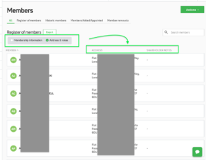 LBG member register – toggle between member info and addresses/ notes – you can now toggle the members register view for LBG companies in the same way that you can toggle the shareholder register in companies limited by share: between membership information and addresses/ notes.